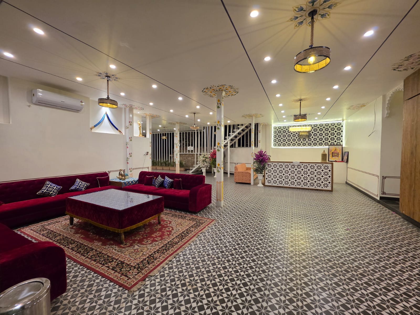 The Hotel features a feel of a Great Royal Chittorgarh Kothi, One of the best boutique hotels in Chittorgarh which is equipped with facilities like a Luxurious Indoor Swimming Pool, Chittorgarh City views Rooftop Restaurant and a heritage hotel experience in Chittorgarh. There is a grand entrance featuring a spacious reception to guide you with the stay facilities, a travel desk, and a booking area for city view dinner and campings and cultural programs.